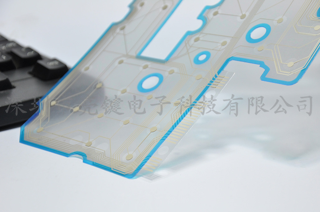 目前普通键盘的主要印刷原料是导电银浆,要求导电银浆的导电性能要好,附着力要好,耐弯折性要好。随着导电膜技术的不断发展,已有开始运用导电碳浆印刷线条,以及运用防水胶对导电膜起到防水作用,从而在某些特殊情况下延长了键盘的使用寿命。