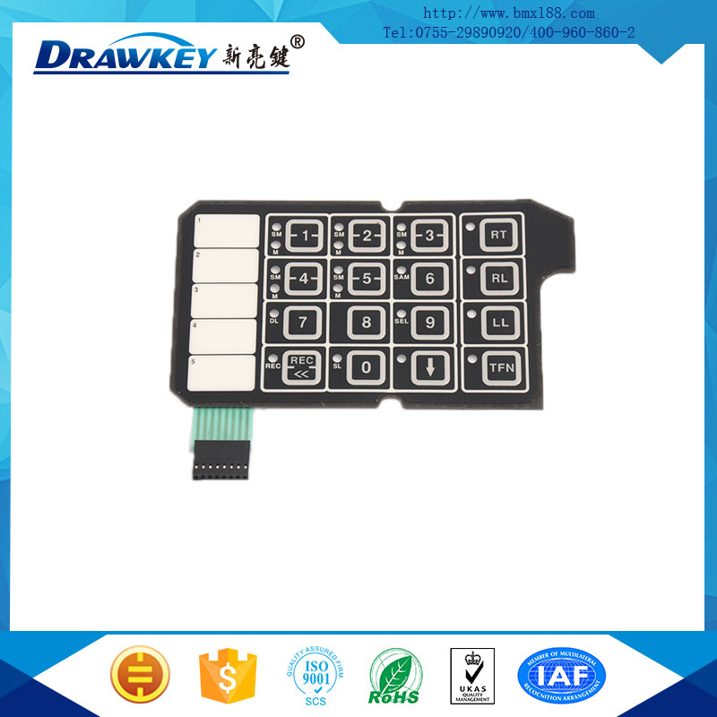 柔性薄膜开关又称轻触式键盘,采用平面多层组合而成的整体密封结构,是将按键开关、面板、标记、符号显示及衬板密封在一起的集光、机、电一体化的一种新型电子元器件,是电子产品外观结构根本性的变革,它可取代常规分立元件的按键,更可靠地执行操作系统的任务。