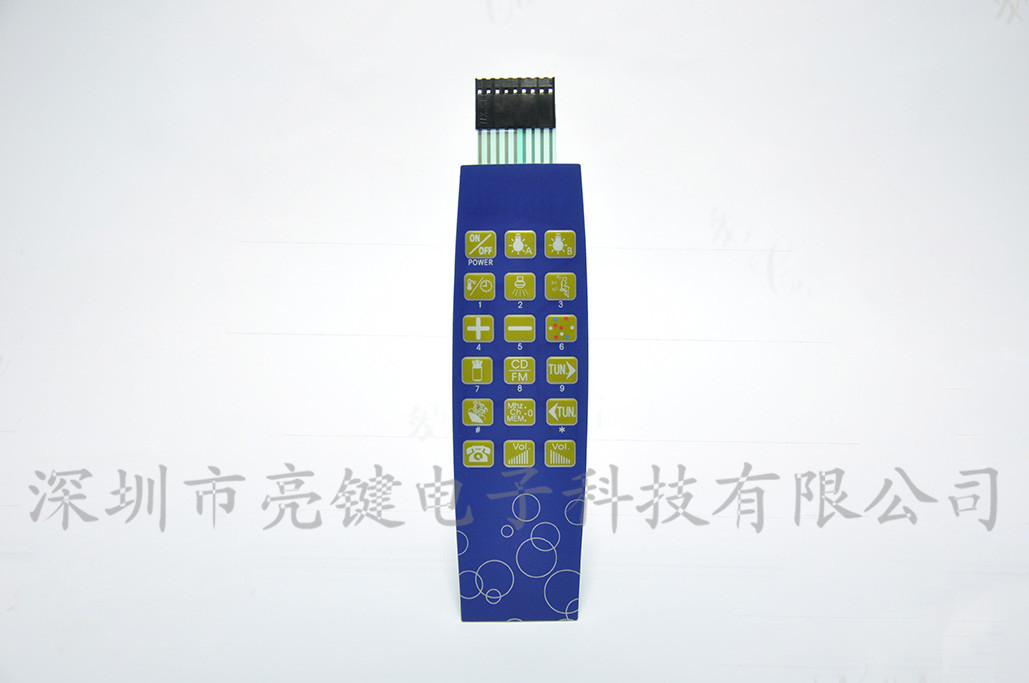 薄膜开关在设计上排列组合成薄膜开关键盘,且有多层薄膜组合而成,所有开关之间的连线及引出线是由丝网印刷一次性而成,总厚度一般在1mm以下,因此缩小了体积,减轻了重量,提高了可靠性。