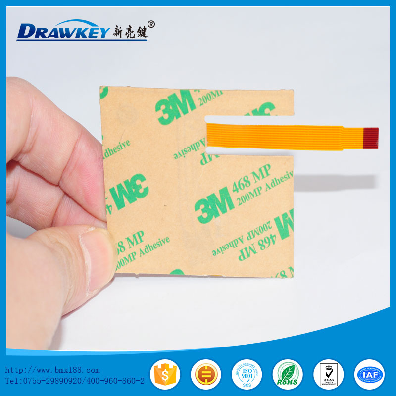 薄膜面板是在PVC、PC、PET等柔性塑胶材料印刷上既定的图形、文字说明等并配以不同材质的双面胶