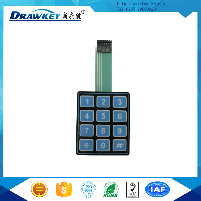 薄膜数字按键多用于电子教学,计算器、密码机、万年历、电话机、电子琴,学习机、语音电子书、电子挂历、电子有声挂图、跳舞毯、玩具、汽车天线等、生产商。