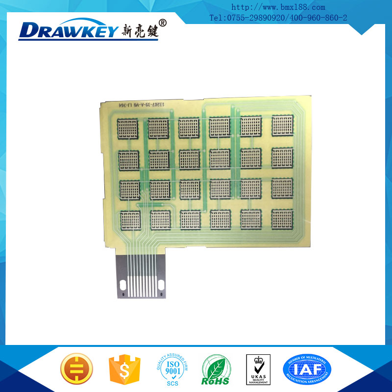 点读机印刷线路就是采用PET薄膜,PC薄膜将导电银浆,导电碳浆根据客户的IC矩正而画好的图纹通过丝网印刷出来的产品:主要用于防水,防油污,超薄的一些产品上面,如防水键盘,机器用薄膜开关,薄膜天线,玩具学习机,玩具早教机,玩具点读机上面。