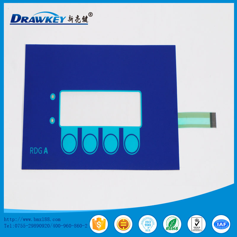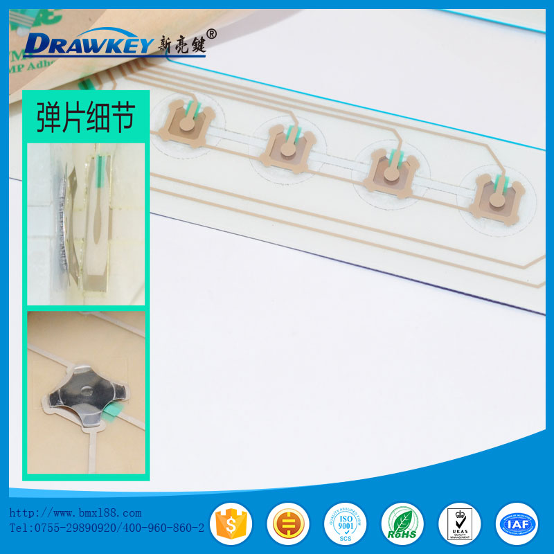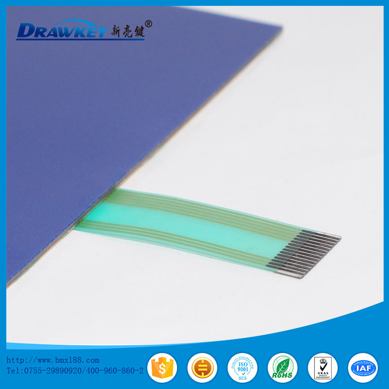 薄膜开关又称轻触式键盘、薄膜面板等,是采用PC,PVC,PET,FPC及双面胶等软性材料,运用丝网印刷技术制作而成的多平面组合密封的集图形、按键、标记符号显示、导电及电子开关功能于一体的塑胶电子制品。