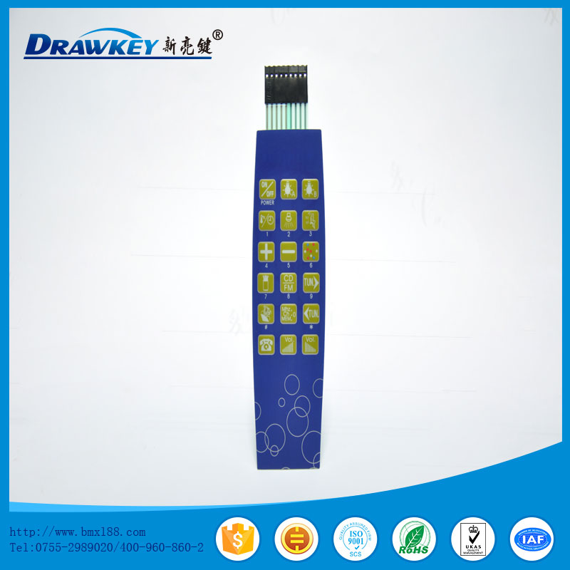 pc导电面板又称薄膜面板线路印刷pc薄膜面板等,用丝网印刷技术制作而成的多平面组合密封的集图形、按键、标记符号显示、导电及电子开关功能于一体的塑胶电子制品。