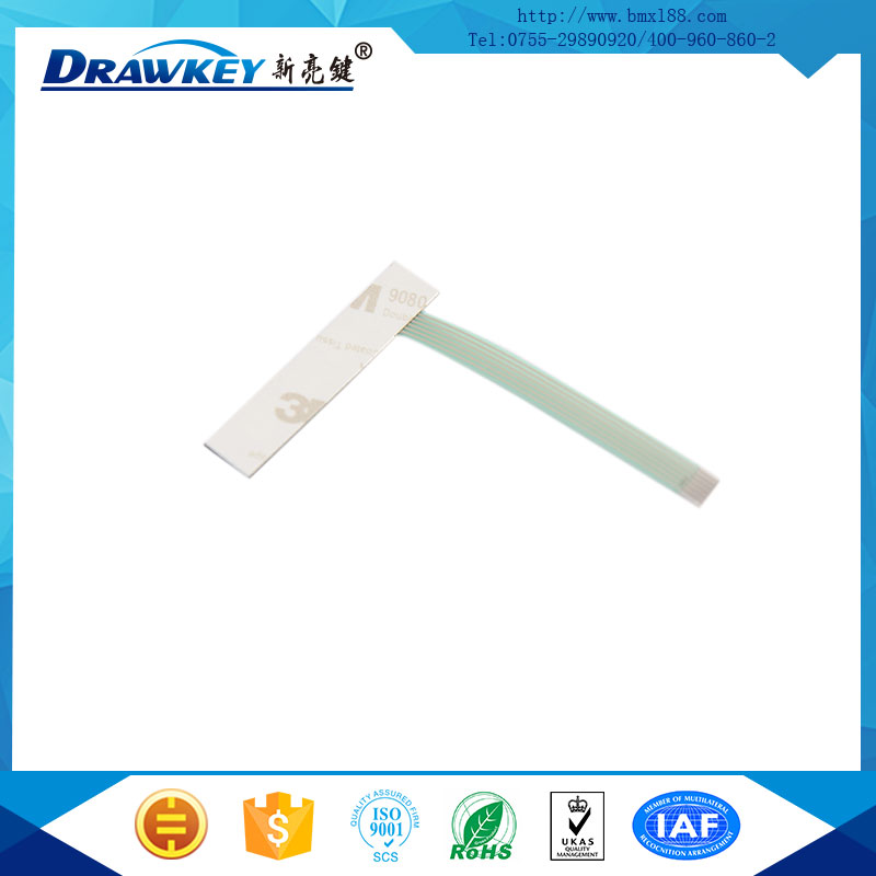 - 软性线路薄膜开关是在PVC、PC、PET等柔性塑胶材料上印刷既定的图形、文字说明、透明窗等,粘贴上不同类型的双面胶,制作而成的用于起标识和保护作用的塑胶制品。