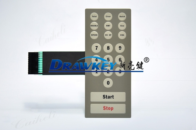 面板色泽好,采用进口油墨制成,防水,抗氧化力强,接触轻,纯银线路阻抗低 机械薄膜开关,工业机械薄膜开关,工业薄膜开关,电器薄膜开关
